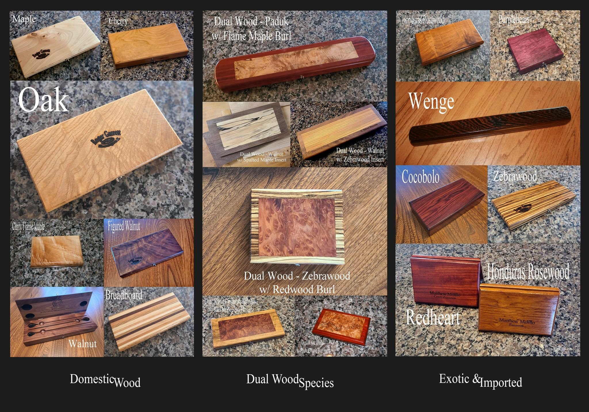 Zebrawood, Purpleheart, Paduk, Honduras Rosewood, Cocobolo,
